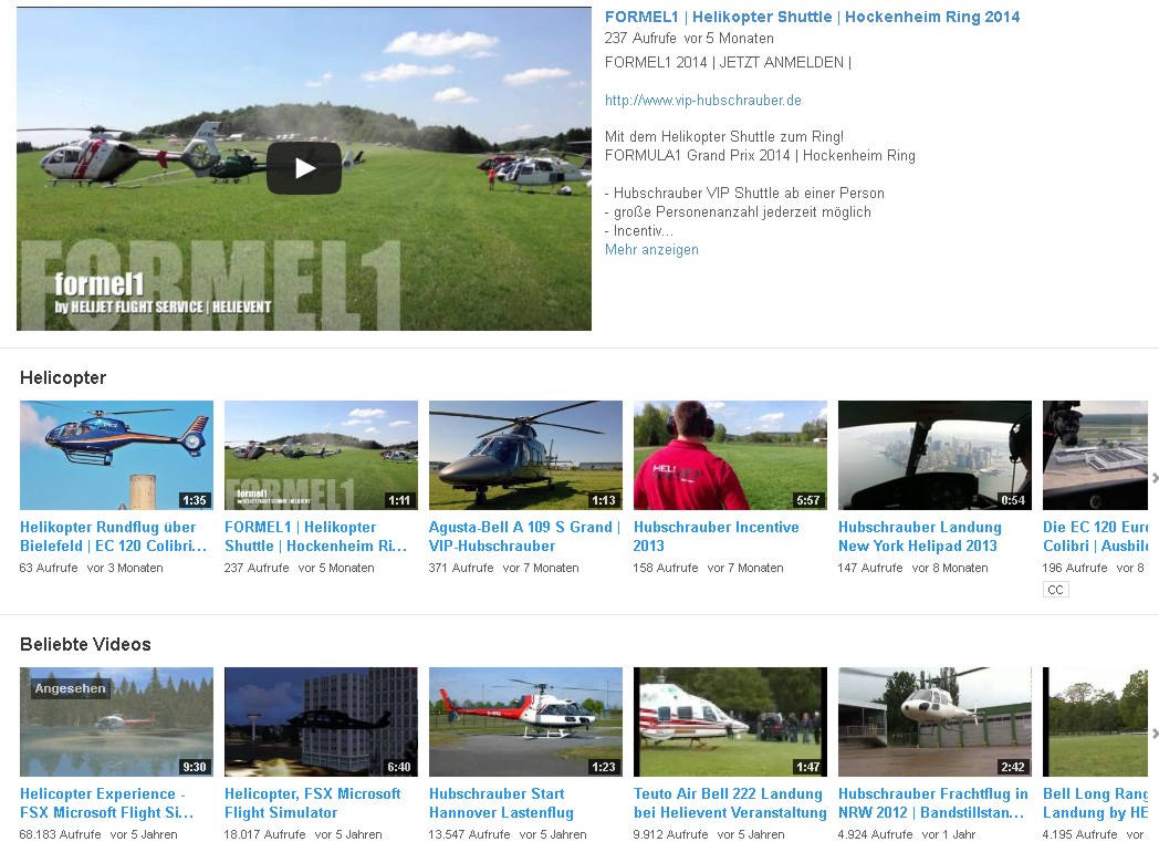 HELIJET GmbH | HELIEVENT bei YouTube. Dieser YouTube Kanal ist für jeden Hubschrauber Fan ein „Muss“! Von TV-Mitschnitten bis hin zu Trailern und kleinen Videos findest Du hier alles rund um das Thema Hubschrauber. Hast auch Du ein Video, dass wir auf unserem Kanal veröffentlichen sollen?